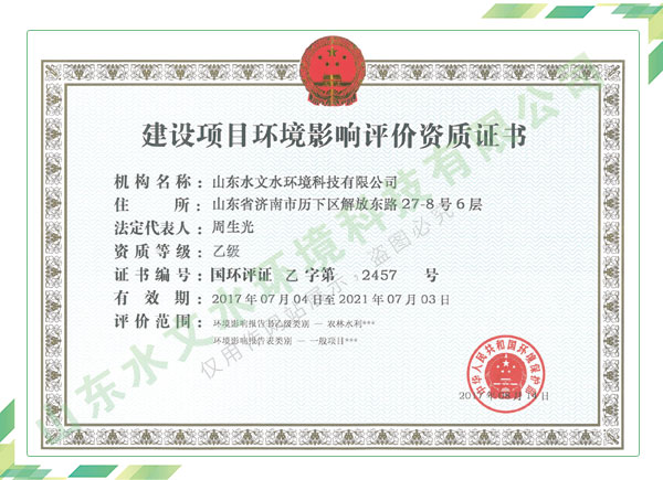 公司擁有水利工程設(shè)計(jì)、水土保持、水文水資源調(diào)查評(píng)價(jià)、水資源論證、建設(shè)項(xiàng)目環(huán)境影響評(píng)價(jià)、市政公用工程施工總承包、水利水電工程施工總承包、電子與智能化工程專業(yè)承包等資質(zhì),2017年通過(guò)質(zhì)量管理體系、環(huán)境管理體系、職業(yè)健康安全管理體系認(rèn)證;2020年被評(píng)為國(guó)家級(jí)高新技術(shù)企業(yè),同年被中國(guó)水利企業(yè)協(xié)會(huì)推薦為第一批“合同節(jié)水服務(wù)企業(yè)”;2021年被山東省、濟(jì)南市評(píng)為 “專精特新”中小企業(yè)。業(yè)務(wù)范圍涉及水利工程設(shè)計(jì);節(jié)水設(shè)計(jì)、改造、水平衡測(cè)試;山洪災(zāi)害調(diào)查;城市水資源調(diào)查評(píng)價(jià);建設(shè)項(xiàng)目水土保持方案編制、監(jiān)測(cè)、驗(yàn)收、水土保持規(guī)劃;水安全保障規(guī)劃、建設(shè)項(xiàng)目水資源論證、規(guī)劃水資源論證;建設(shè)項(xiàng)目環(huán)境影響評(píng)價(jià);入河排污口論證;防洪影響評(píng)價(jià);市政公用工程施工、水利水電工程施工、電子與智能化工程施工等。
